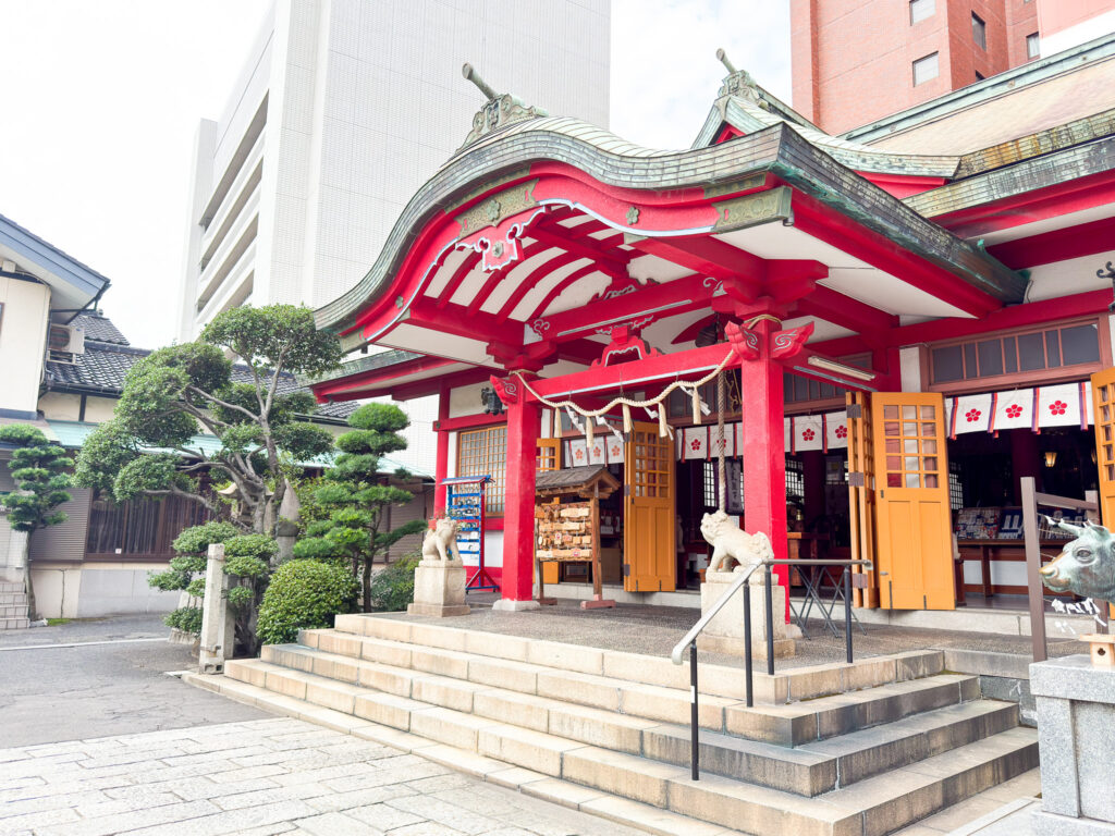 朱色の社殿が青空に映え、訪れる人をやさしく迎えてくれます。