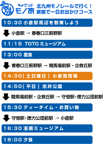 今回は北九州モノレールで気軽に一日を満喫できるお出かけコースを作成しました。